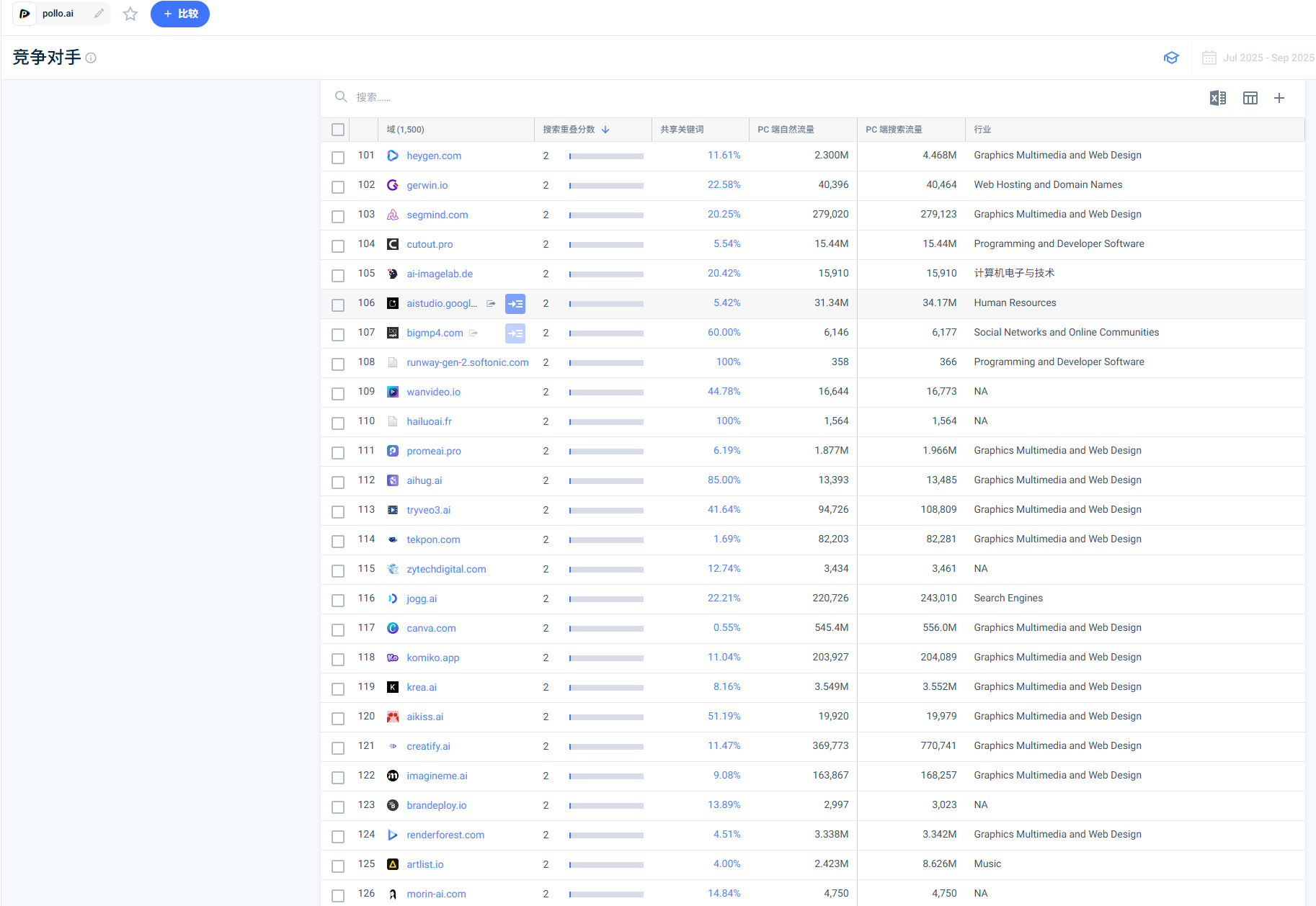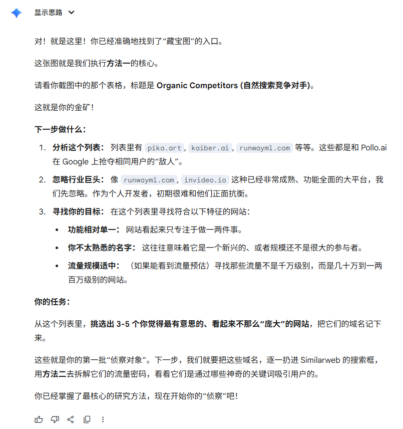 这里再分享一下我的方法。从similarweb查看一些流量比较大的工具站,比如pollo.ai。然后查看它的竞争对手。在它的竞争对手里,找那些功能相对单一、流量不那么大的网站,然后研究、学习、照抄。