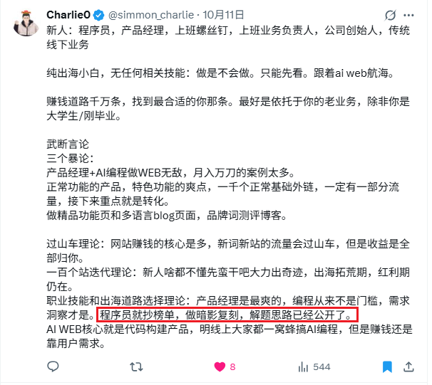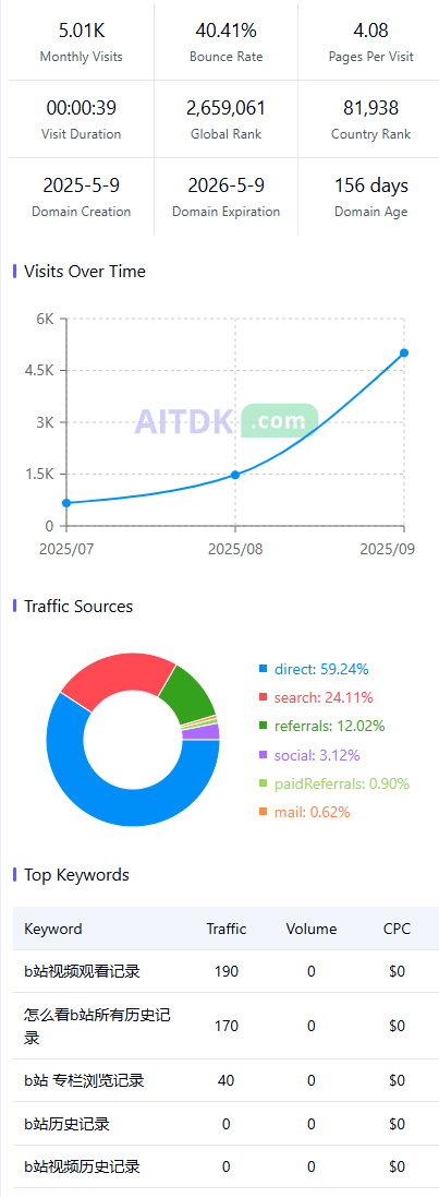 上一个站流量惨淡,点击量是个位数。我最近要去复盘一下。之前大意了,过于极简直接把词拿来用了,后面我要去查一下这个词的难度,调查一下同行等等。