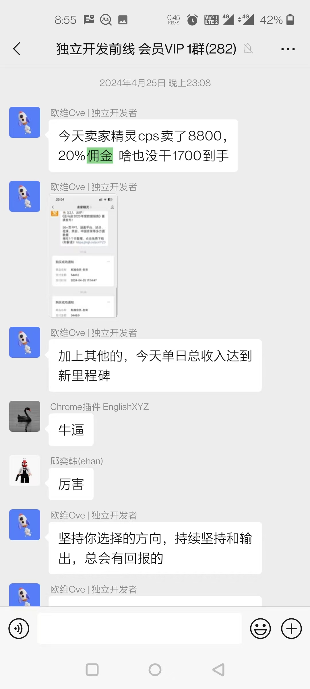 再举一个例子,国内网站独立开发前线的站长欧维,也是玩联盟营销的高手。