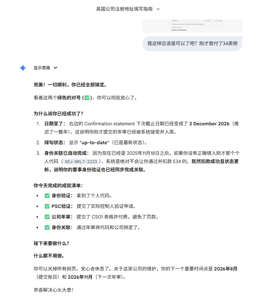 主要遇到的问题是安卓手机用那个one Login app一直说there was a problem signing you in。还好我还有一台苹果手机,用了苹果手机之后就顺利搞定了。拿到了那串个人代码以后又把年审搞了一下,交了34英镑。