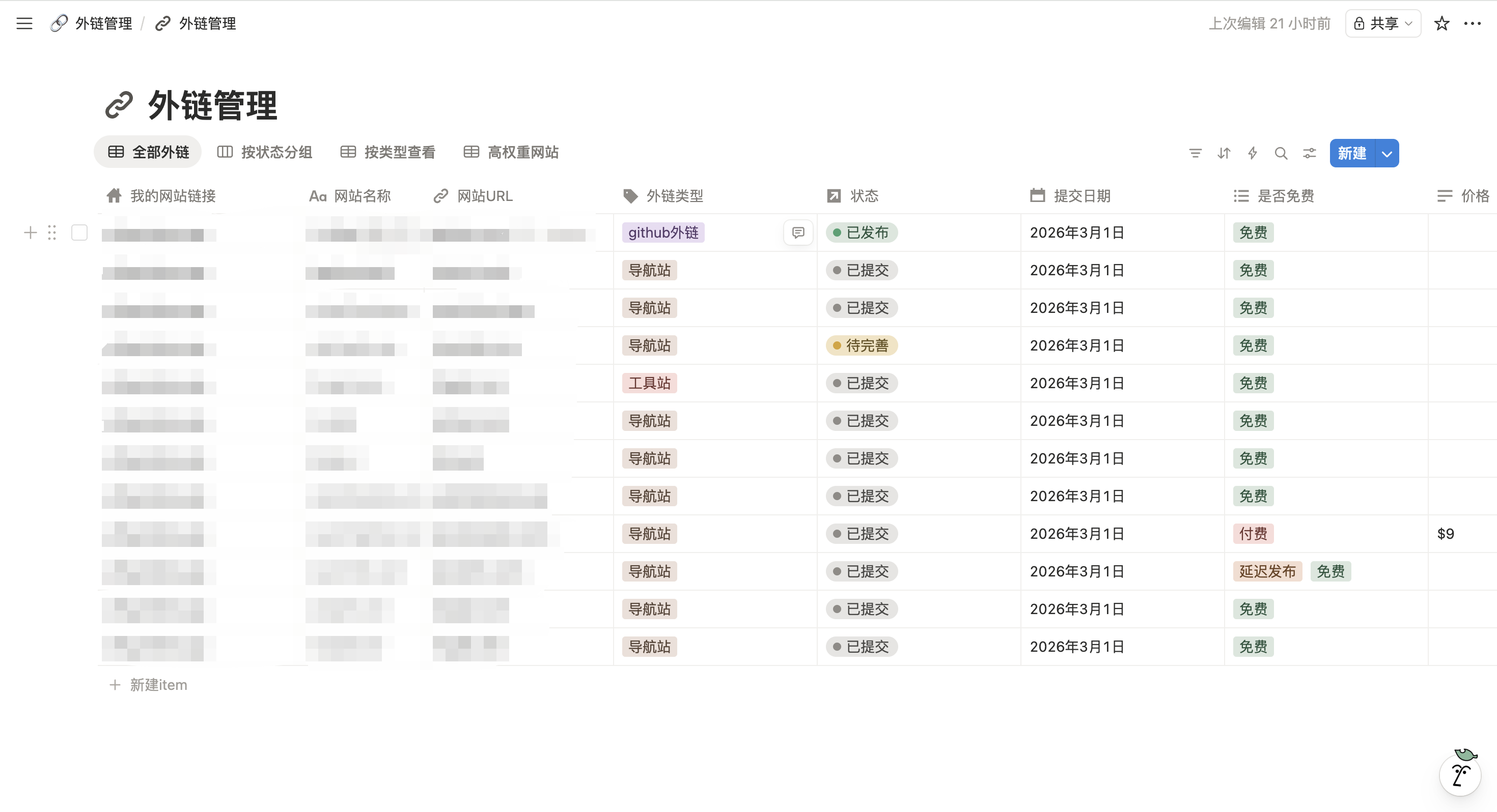 外链管理我是记录在notion上的。