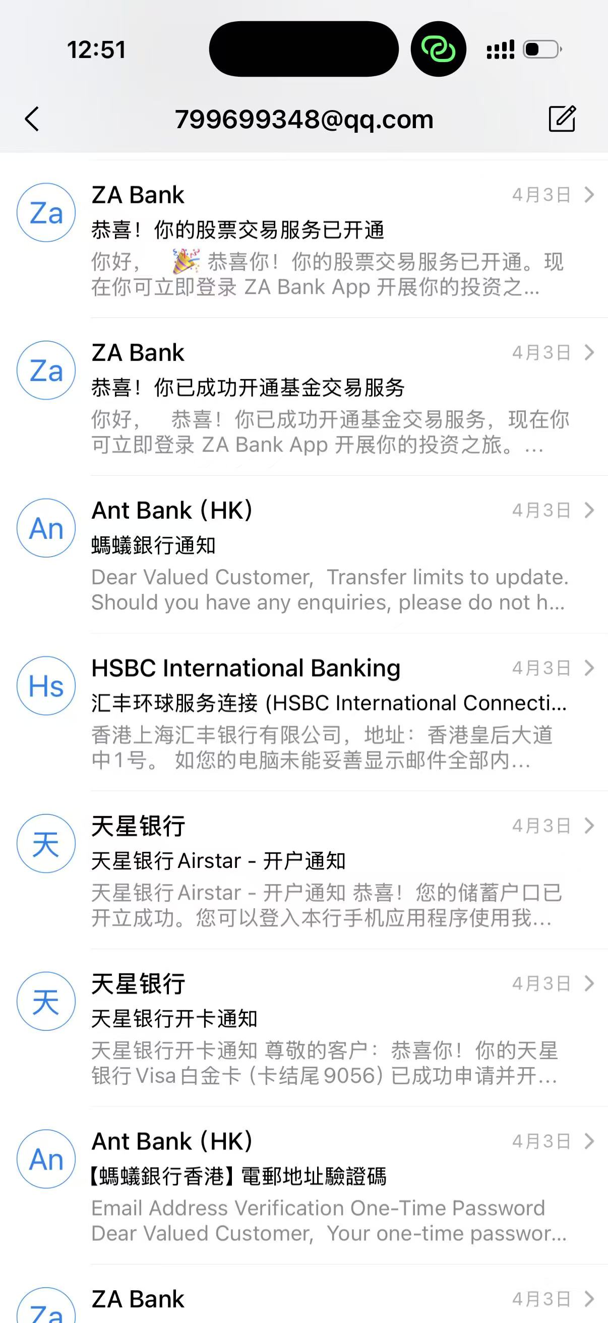 这一次我申请了2个实体银行,中银和汇丰。3个数字银行,众安、天星、蚂蚁。